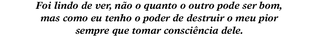Achei a forma como você falou sobre projeção muito corajosa e elegante, como não poderia deixar de ser, vindo de você. Me fez pensar bastante, obrigada!