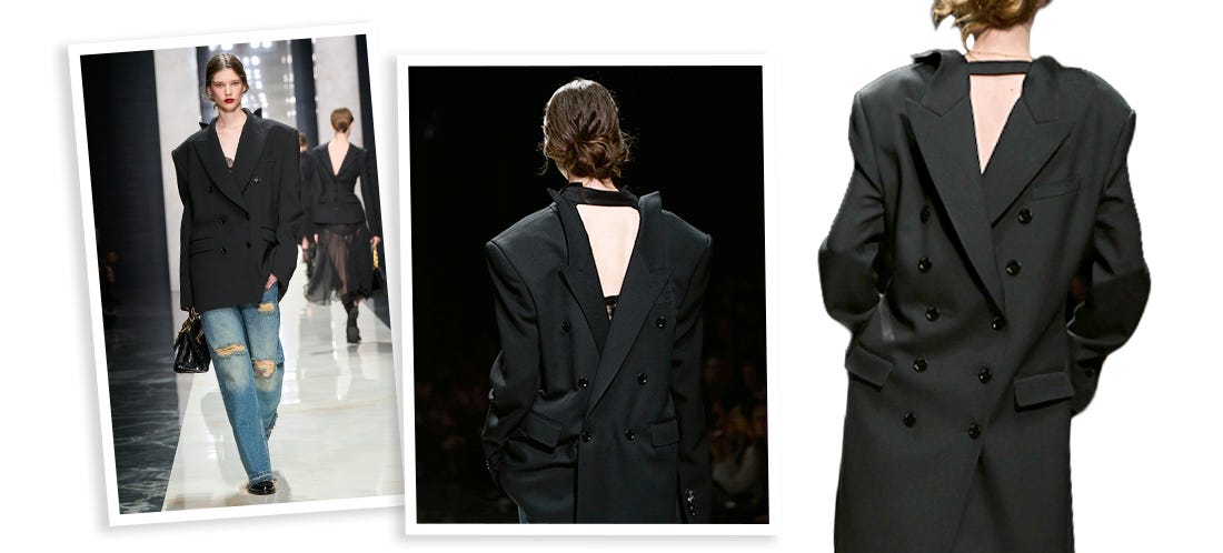 Até mesmo a Dolce & Gabbana, cuja expertise com o tecido plano está mais para a escola clássica que para a disrupção, ousou e replicou nas costas o mesmo abotoamento duplo que está na frente do blazer oversized.